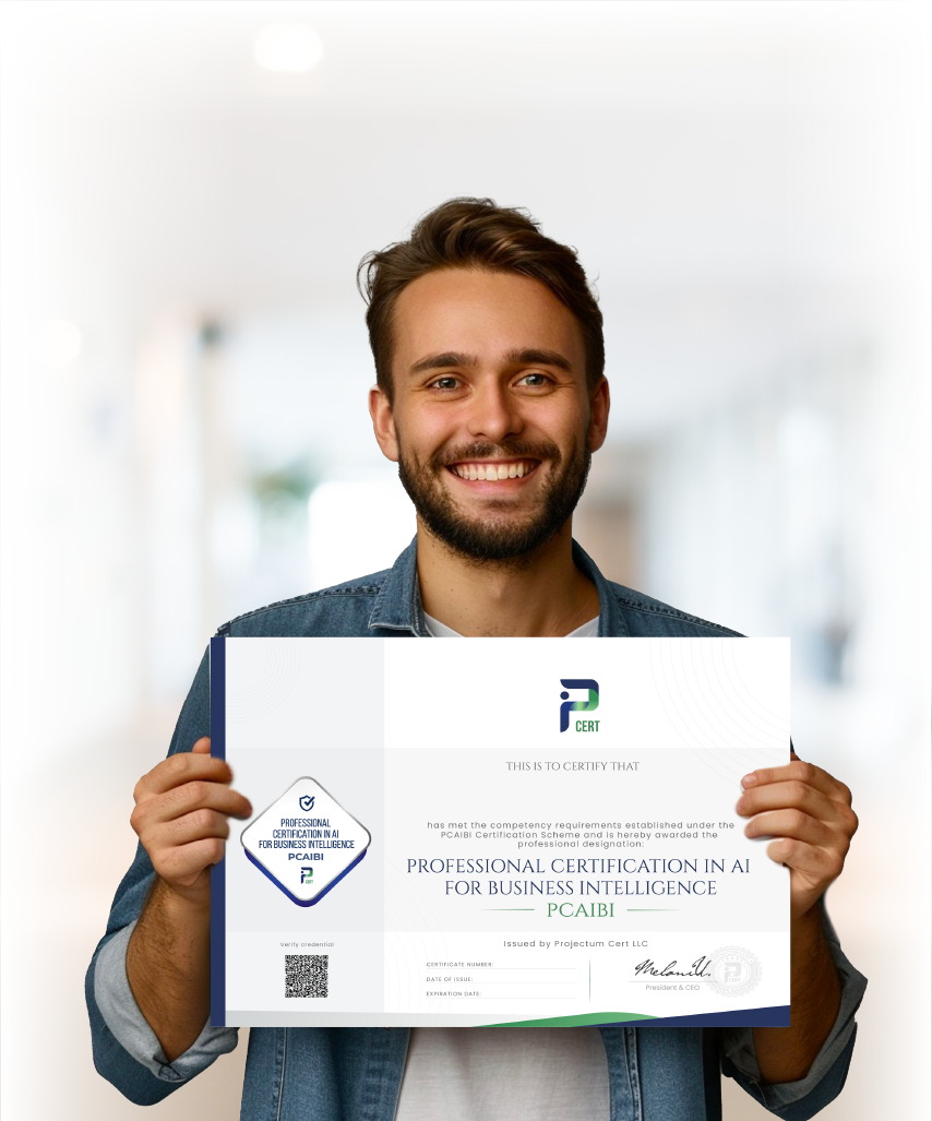 The PCAIBI certification validates your ability to transform data into actionable insights using artificial intelligence. It positions you as a professional capable of supporting data-driven decision-making and improving business performance.